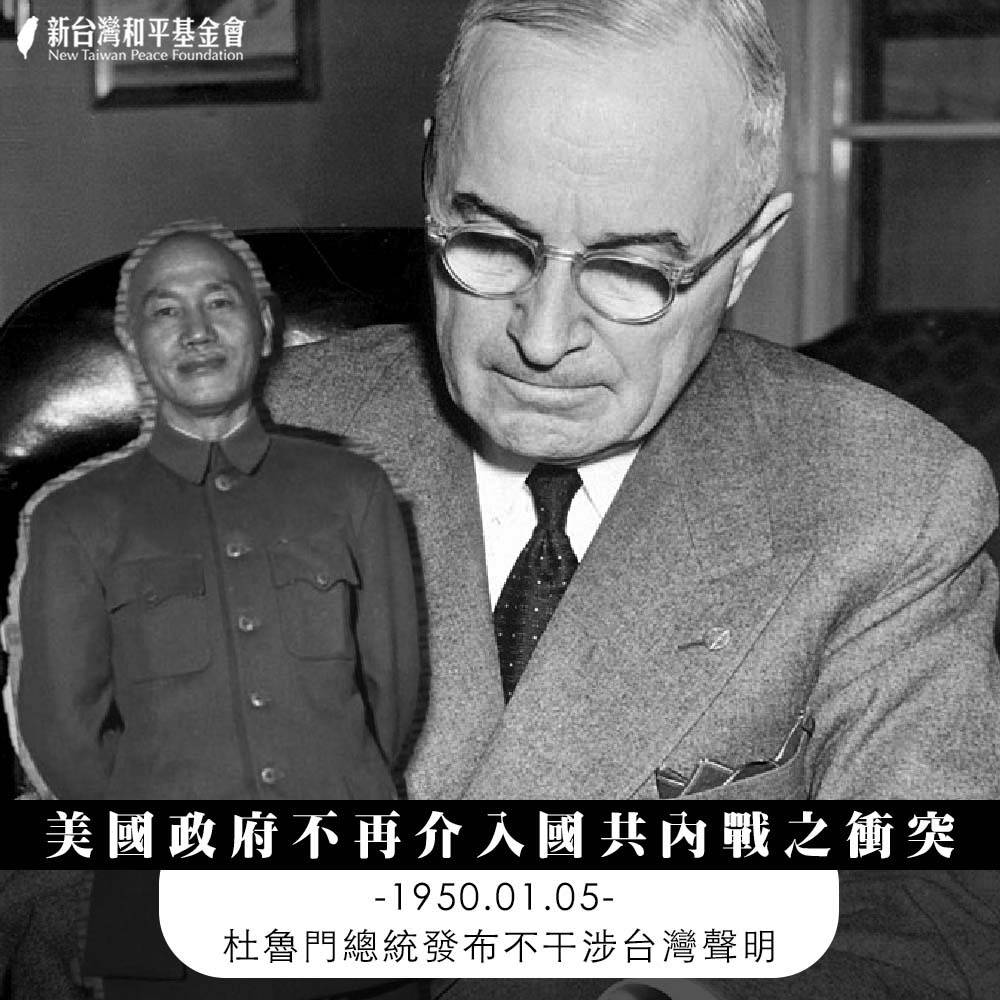 1950年初,美國杜魯門政府冷戰下的地緣政治考量,以及對蔣介石政權獨裁統治、貪汙腐敗的厭惡,準備放棄台灣與朝鮮半島。直到該年6月25日,朝鮮人民共和國(北韓)入侵大韓民國(南韓),韓戰爆發,麥克阿瑟主導反攻,杜魯門政府才扭轉棄韓、棄台政策,派第七艦隊巡防台灣海峽,防止中華人民共和國侵略台灣。