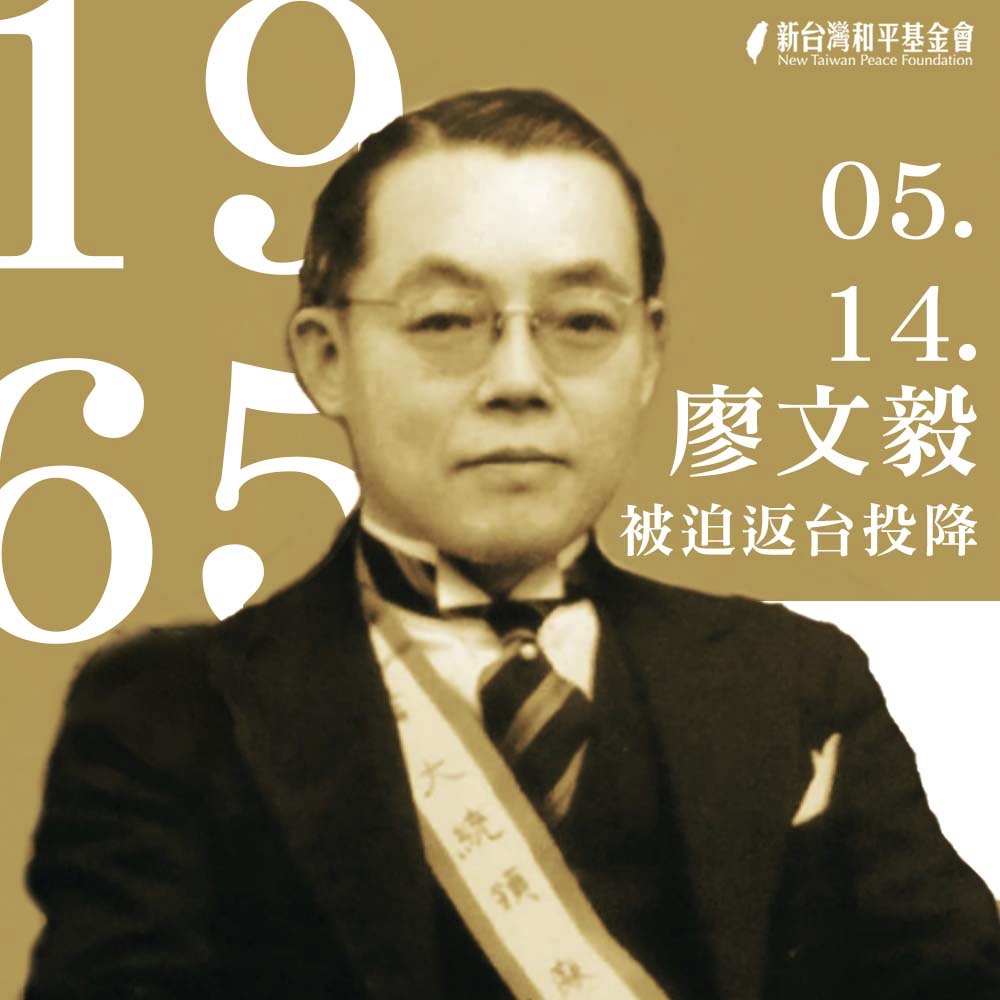 1965年5月14日「#台灣共和國臨時政府」大統領 #廖文毅(1910年3月22日-1986年5月9日),在蔣氏政權以其家人性命脅迫之下返台投降,淪為國民黨宣傳樣板。廖文毅投降,象徵戰後早期海外台獨運動的重大挫敗,卻也因此走出新的發展格局。