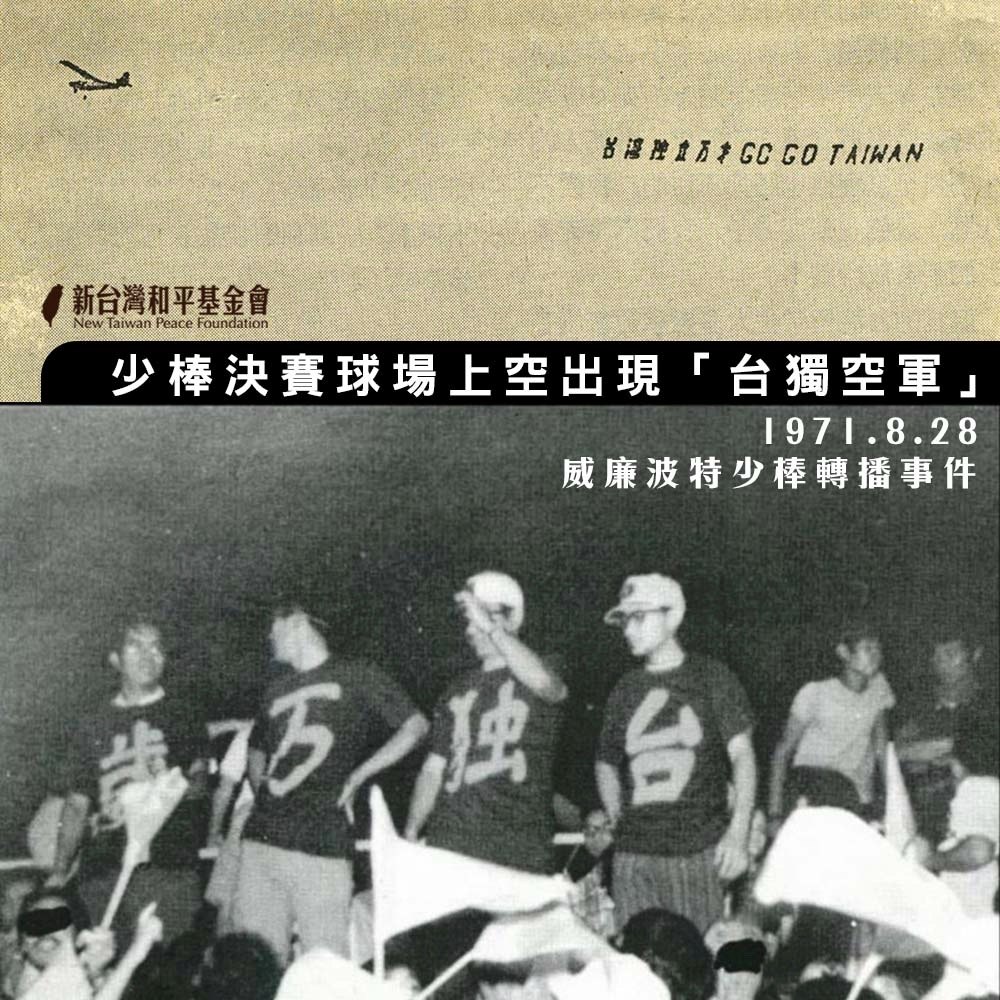 51年前的今天,1971年8月28日,一架小飛機拖著「台灣獨立萬歲 GO GO Taiwan!」的標語,在美國賓州威廉波特的棒球場低空盤旋飛過,吸引全場的目光,這歷史性的一幕也被攝影機給全程拍下。當時台南巨人少棒隊和美國的美西隊正在爭奪世界少棒錦標賽的冠軍。