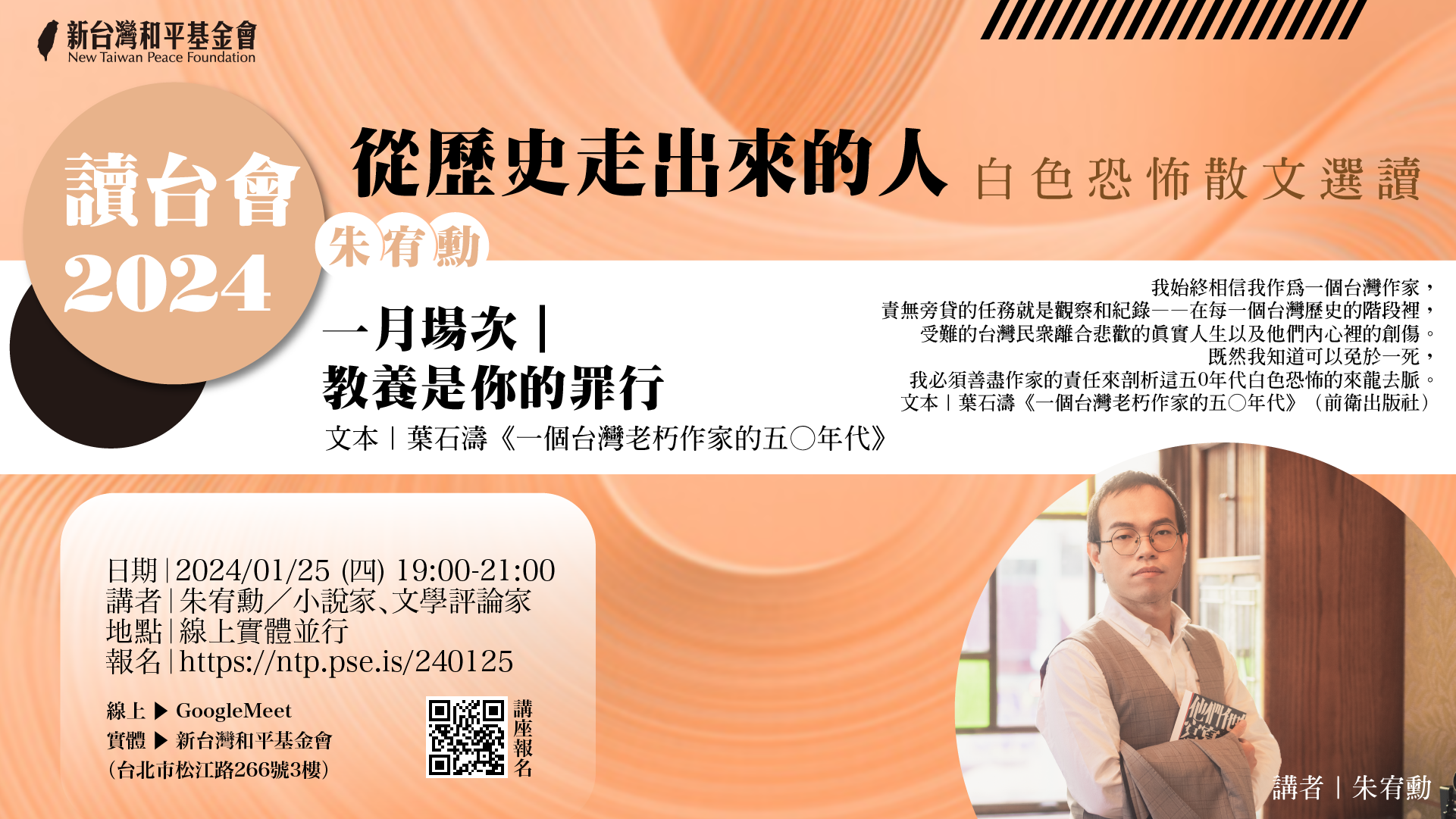 邀請您參加,新台灣和平基金會×朱宥勳老師,「讀台會2024」系列講座。