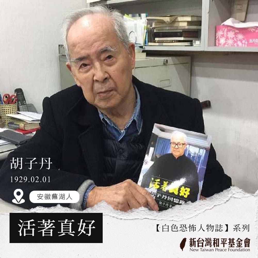 胡子丹,安徽蕪湖人,1929 年 2 月 1 日生。20歲時,正在軍中服役的胡子丹,卻因為一封來自香港友人的問候信,他被誤認是為其收集軍事情報的賣國賊,使得他被捕入獄,本該自由自在的青春歲月,卻只能在監獄中度過,成為白恐政治時期之受難者。