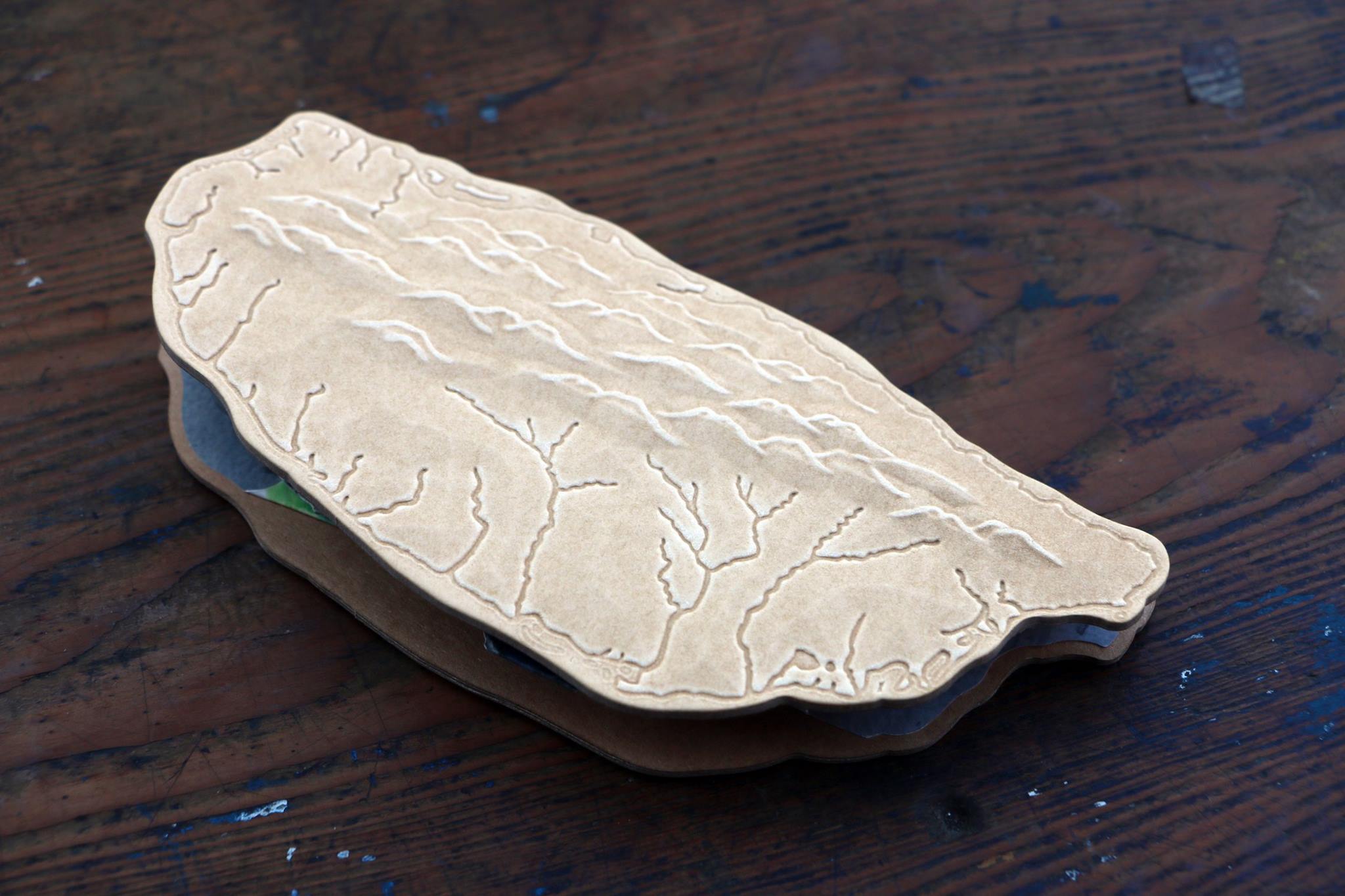 封面取用荷蘭的台灣古地圖、製作成立體浮雕